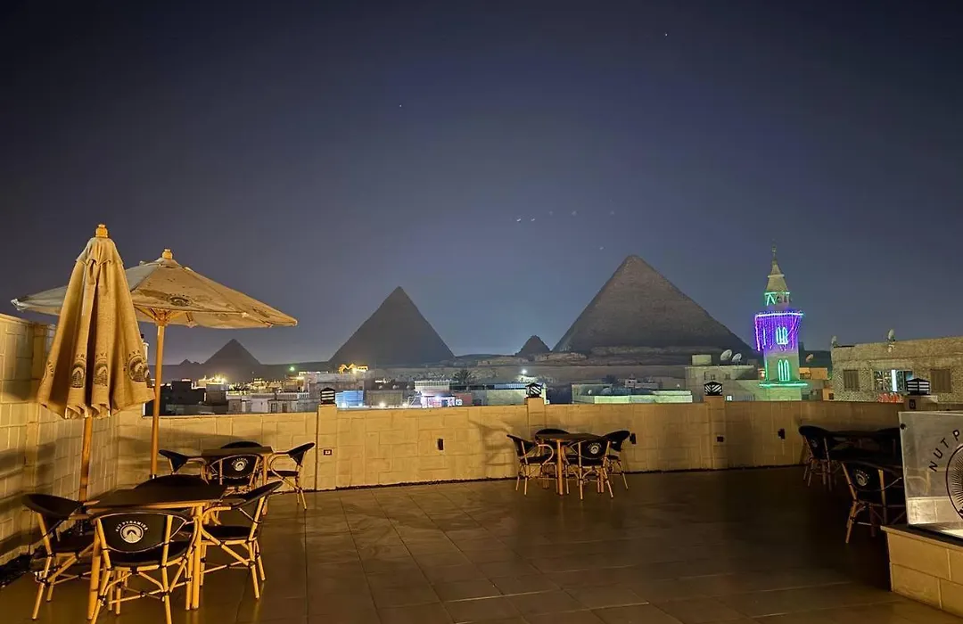 El restaurante Pyramids Restaurant ofrece una gran selección de platos a poco más de 5 minutos a pie del hotel Aten Pyramids View Kafret el-Gabal.